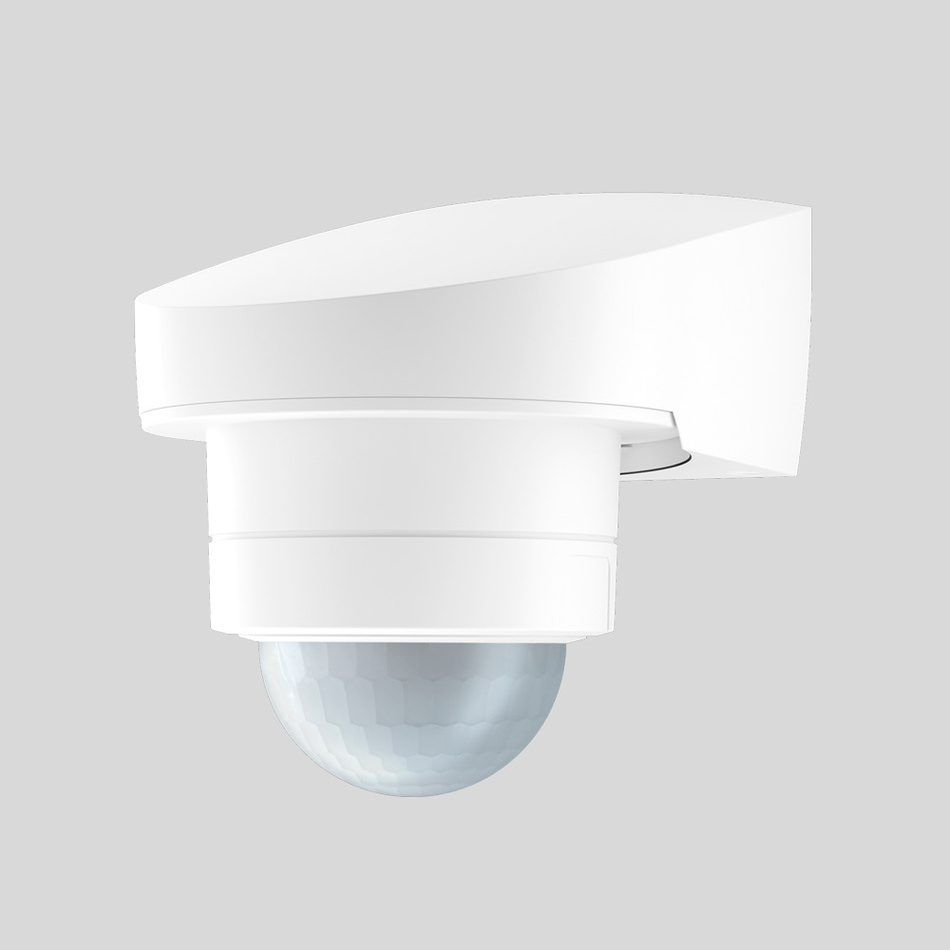 Die Nachlaufzeit und die Dämmerungsstufe können manuell über ein Potentiometer eingestellt werden. Der Bewegungsmelder 240 ist in Schwarz und Alpinweiß erhältlich.